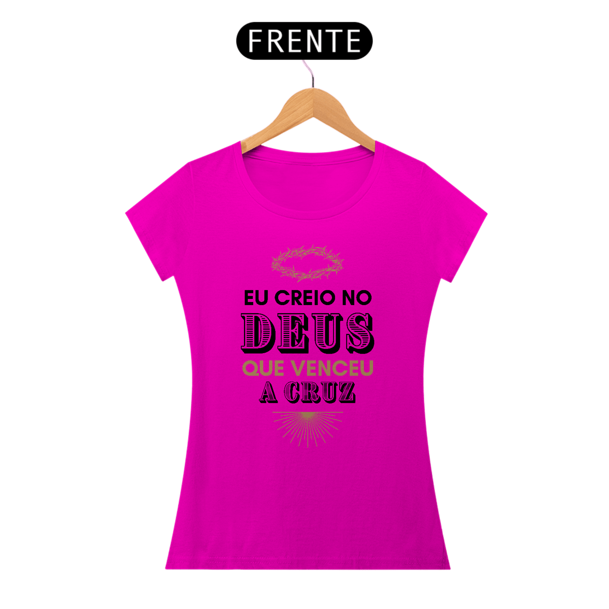 A Baby Look Religiosa "Eu Creio no Deus que Venceu a Cruz" combina estilo e fé em uma peça que transmite esperança e confiança em Deus. Com um design moderno e confortável, esta baby look é ideal para mulheres cristãs que desejam expressar sua crença de forma marcante e elegante. Seja em momentos de devoção, eventos religiosos ou no dia a dia, essa peça reflete a força e a vitória de Cristo.