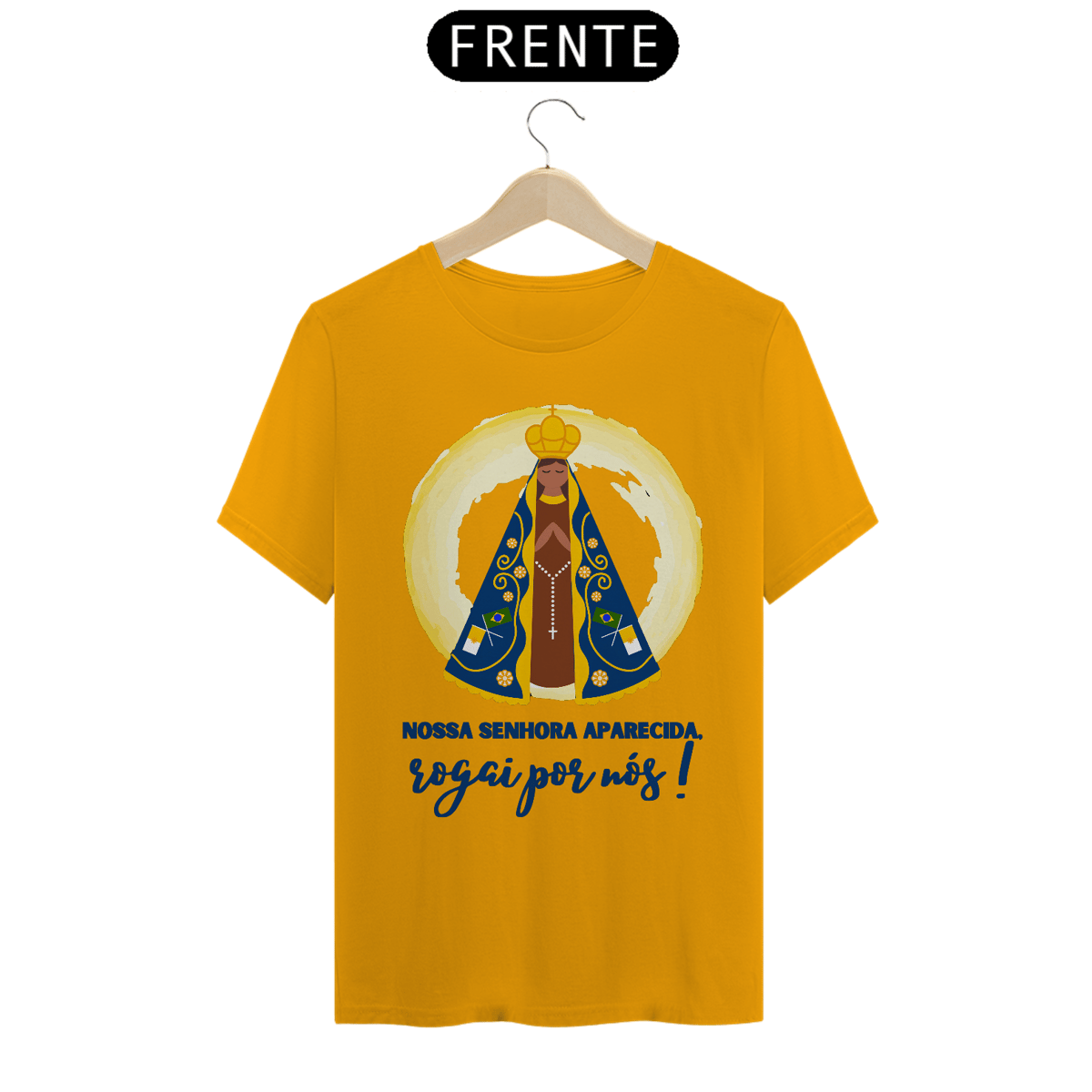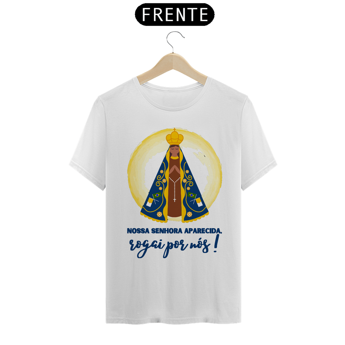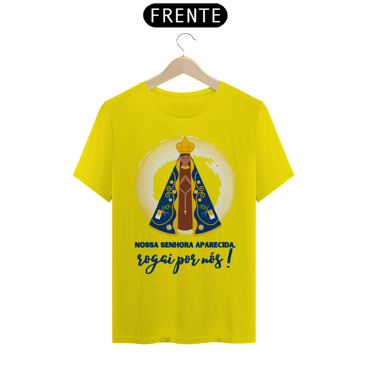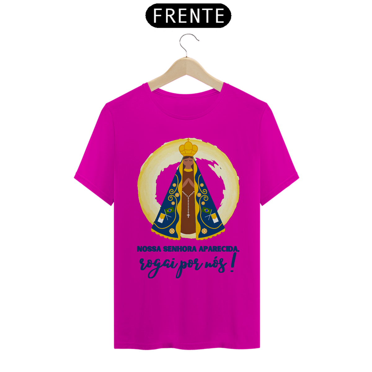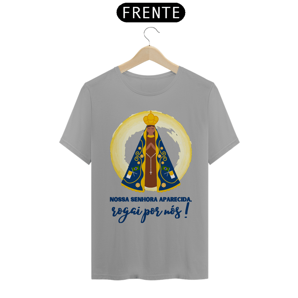Demonstre sua fé e devoção com a Camiseta Religiosa "Nossa Senhora Aparecida, Rogai Por Nós". Esta peça reverencia a Padroeira do Brasil, trazendo sua imagem acompanhada de uma mensagem poderosa de intercessão e proteção. Confeccionada com tecido de alta qualidade, é perfeita para celebrações religiosas, eventos comunitários ou para expressar sua espiritualidade em todos os momentos. Um símbolo de fé, amor e devoção à Mãe de Deus, ideal para quem deseja carregar consigo a bênção de Nossa Senhora Aparecida.