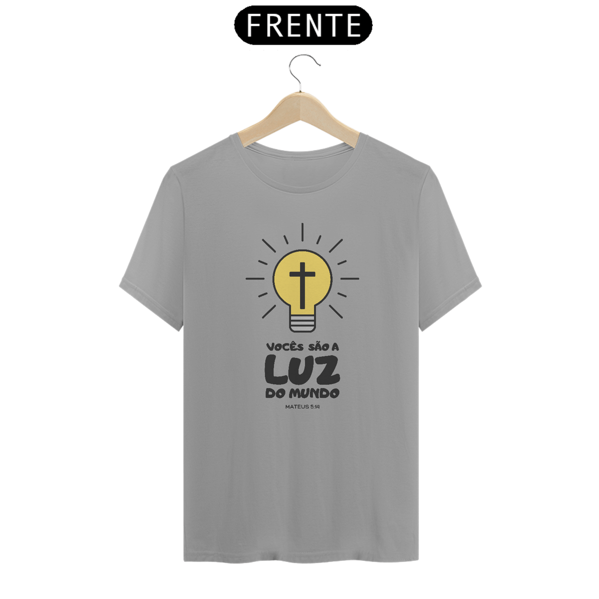 Espalhe inspiração com a camiseta "Vocês São a Luz do Mundo". Este design significativo combina uma lâmpada iluminada com raios de luz, simbolizando o chamado de Mateus 5:14 para ser luz em meio à escuridão. Confortável, estilosa e de alta qualidade, esta peça é perfeita para quem deseja expressar sua fé de forma marcante.